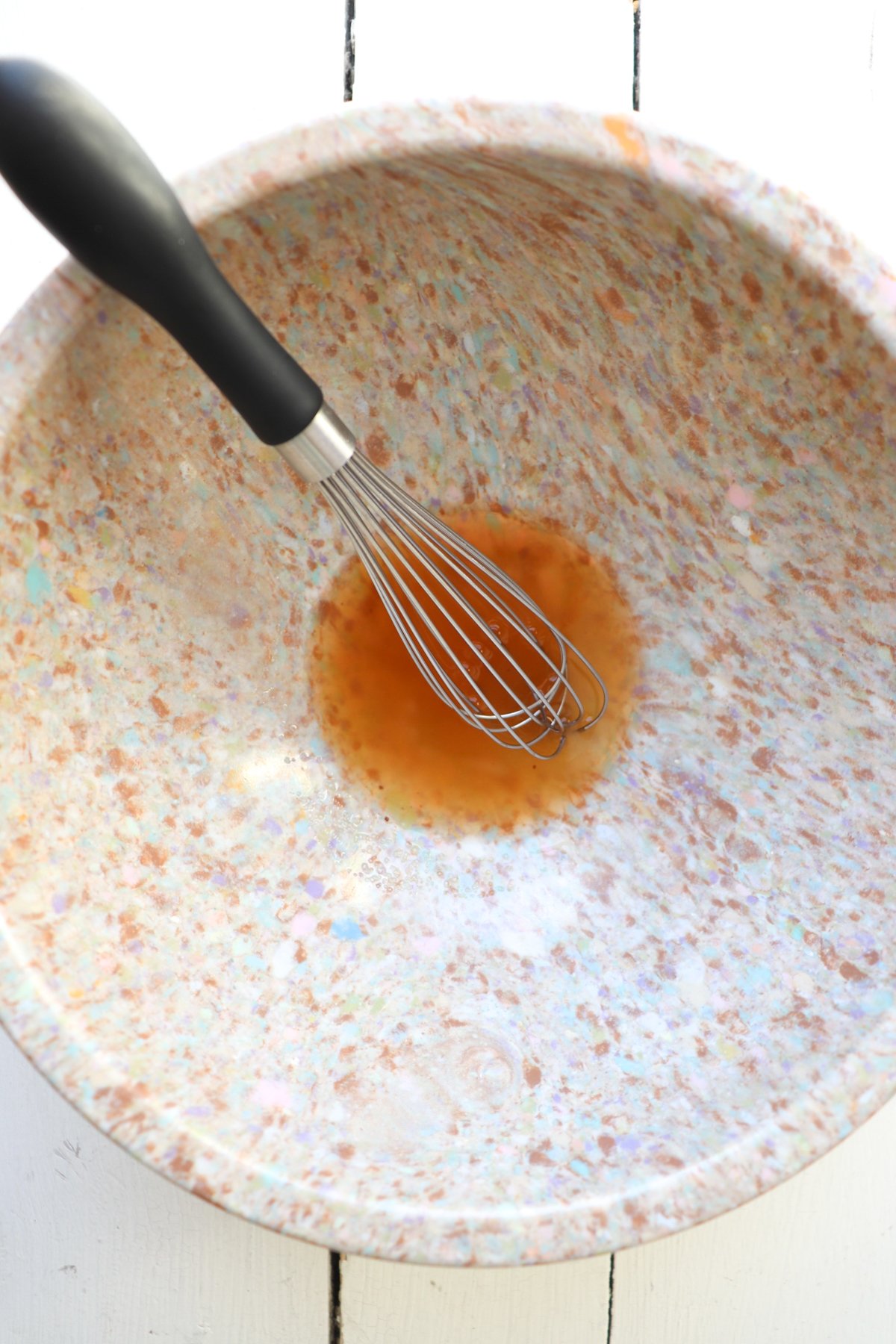 - To a mixing bowl add apple cider vinegar and sugar and whisk to dissolve sugar.