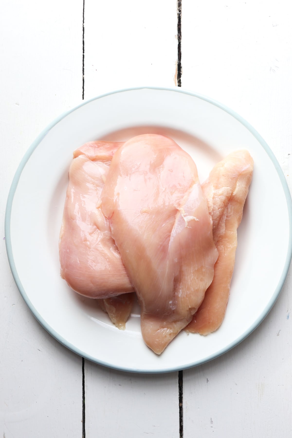- If using boneless skinless chicken breasts, butterfly them and slice all the way through so each breast is two thin pieces.