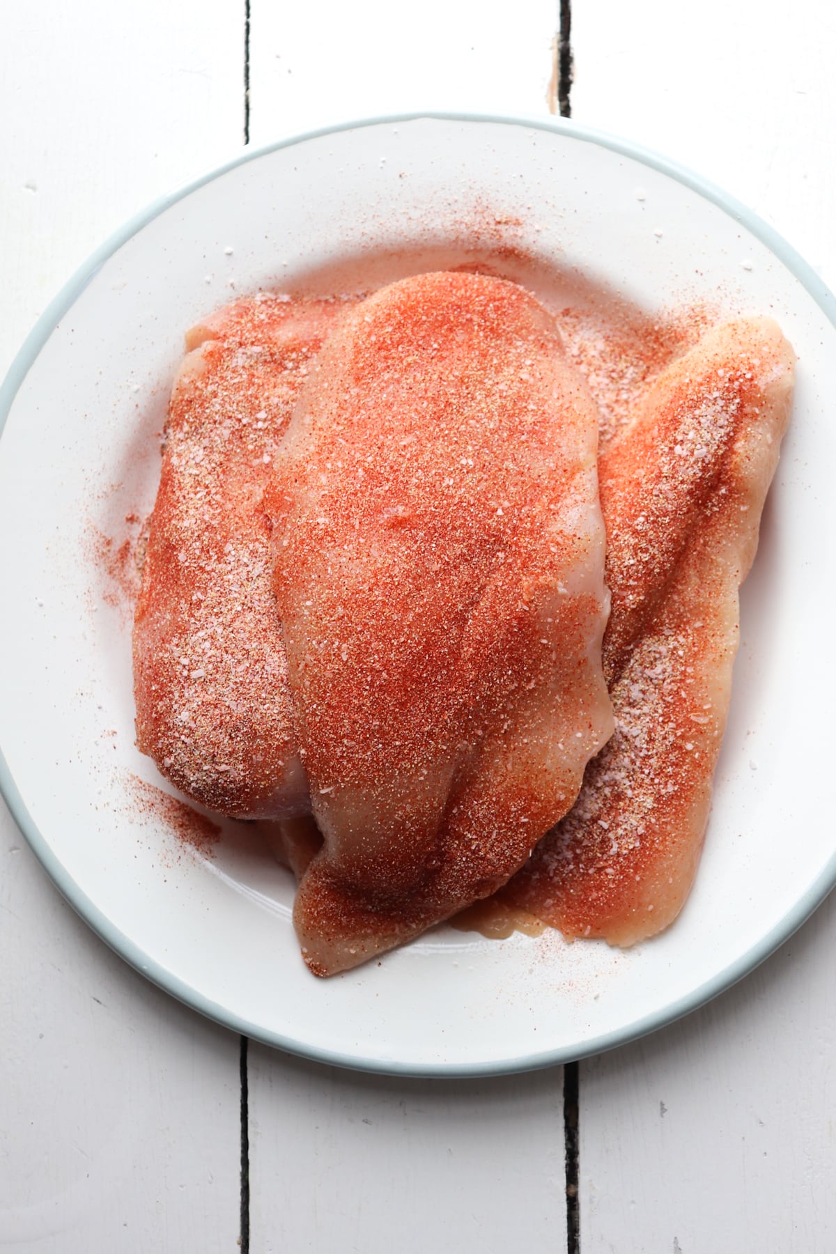- Spices: To season the chicken breasts you’re going to use a blend of garlic powder, paprika, onion powder, and salt.
