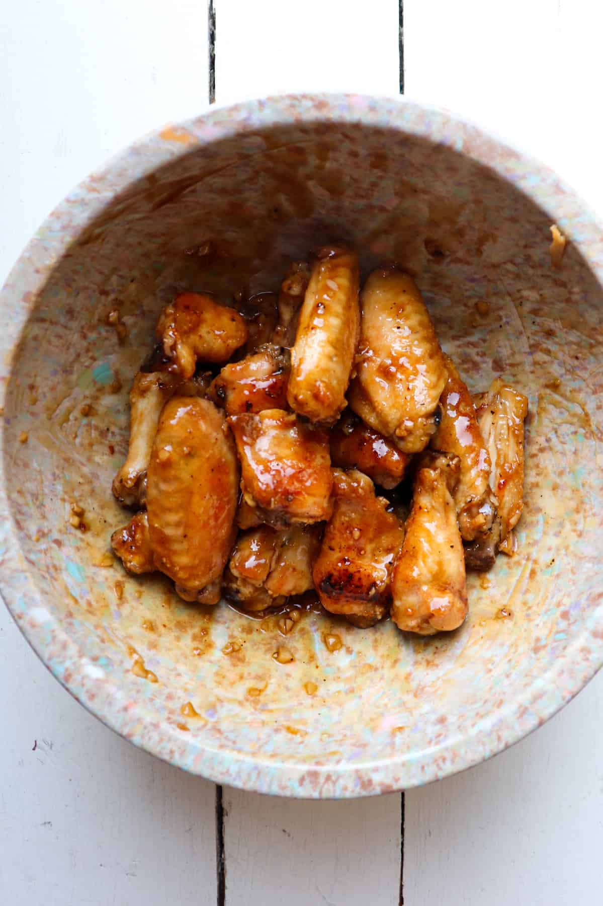 Pour mixture over chicken wings, and toss to coat thoroughly.