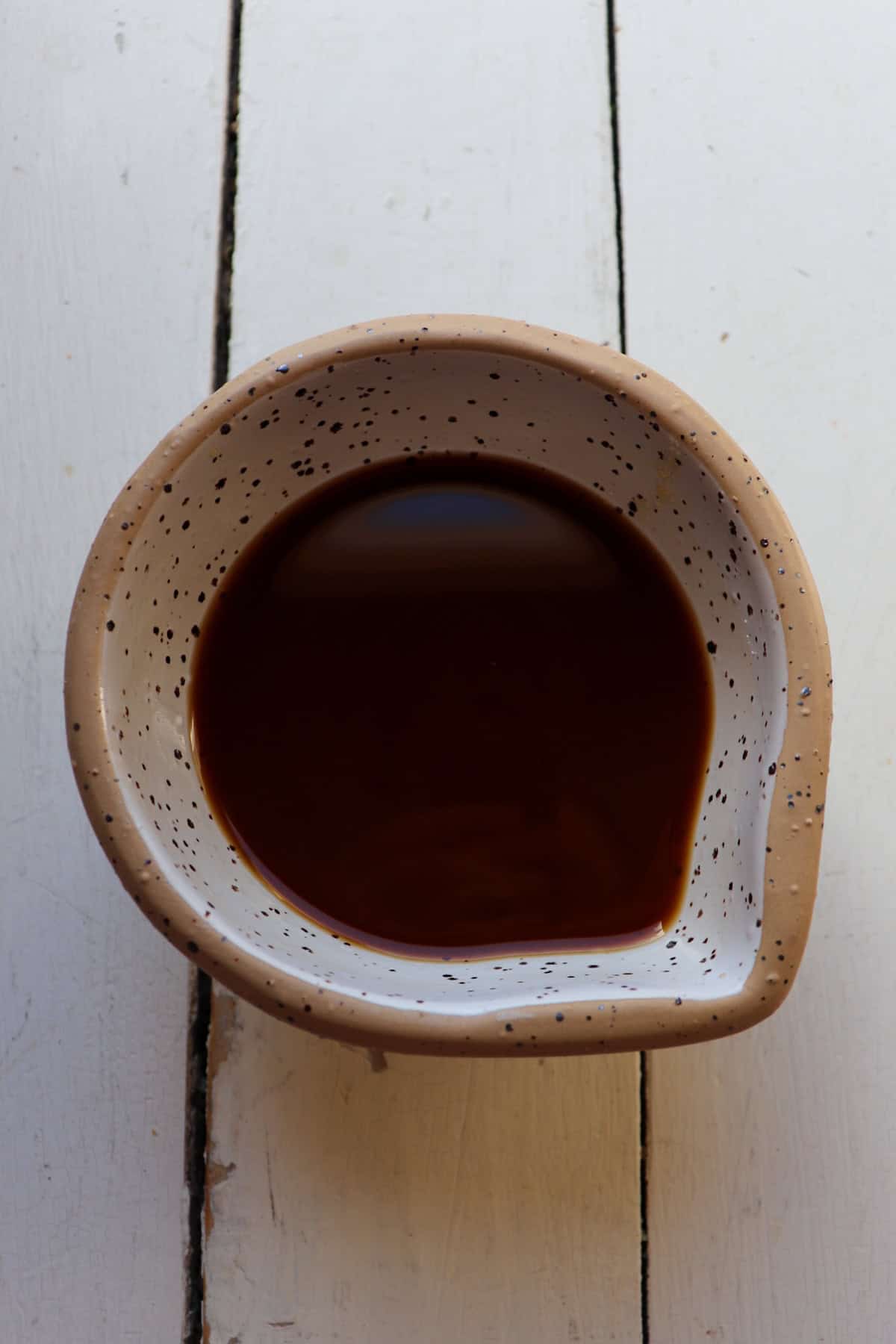 - In a small saucepan, melt butter. Add minced garlic, and cook for 1-2 minutes or until fragrant. Add soy sauce, rice wine vinegar, cornstarch, and honey. Whisk to thicken and for for about 2 to 3 minutes. Remove from heat.